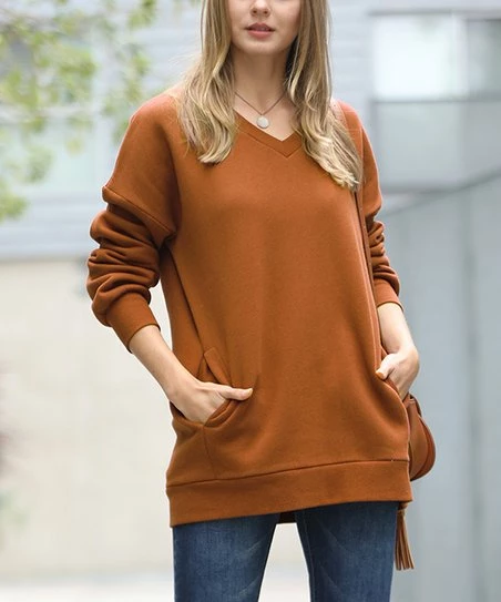 42POPS | Almond V-Neck Long-Sleeve Pocket Sweatshirt – Women