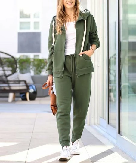 Upgrade your loungewear collection with this coordinated set featuring a zip-up hoodie and joggers made from fleecy fabric.