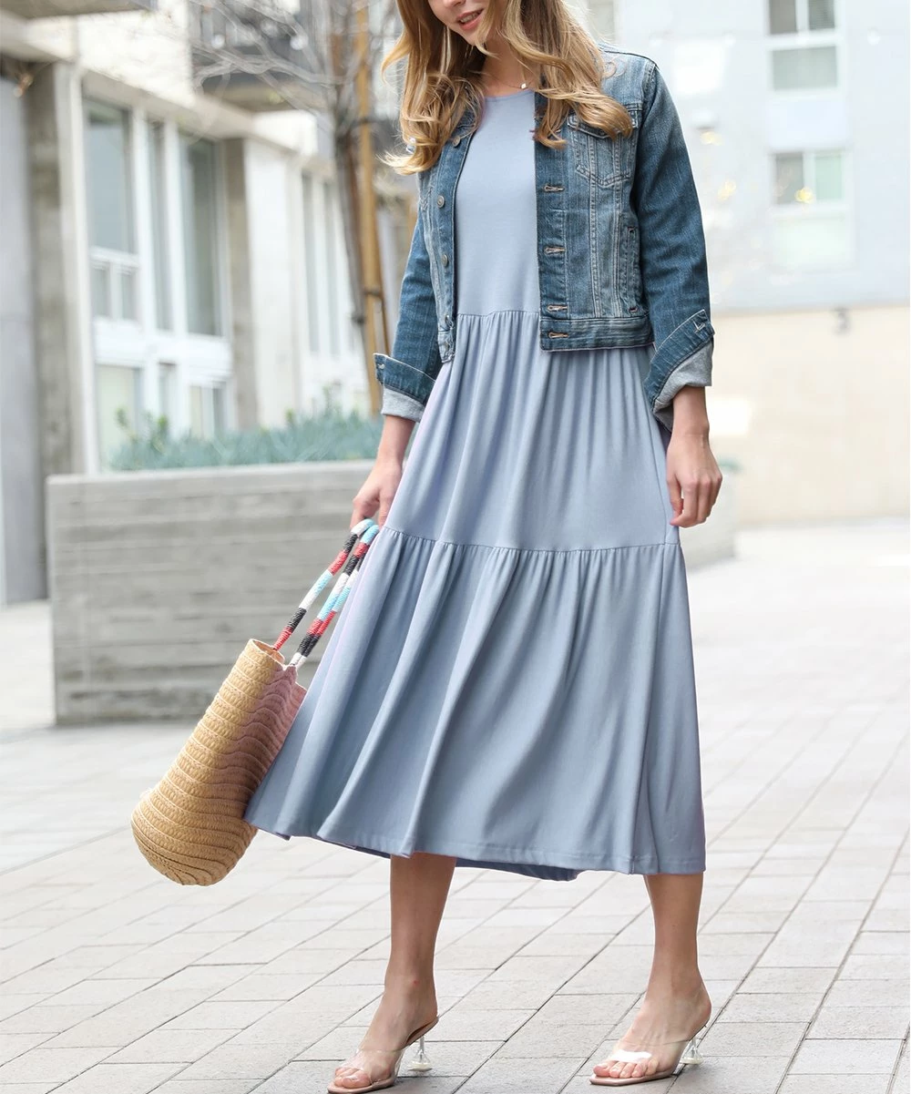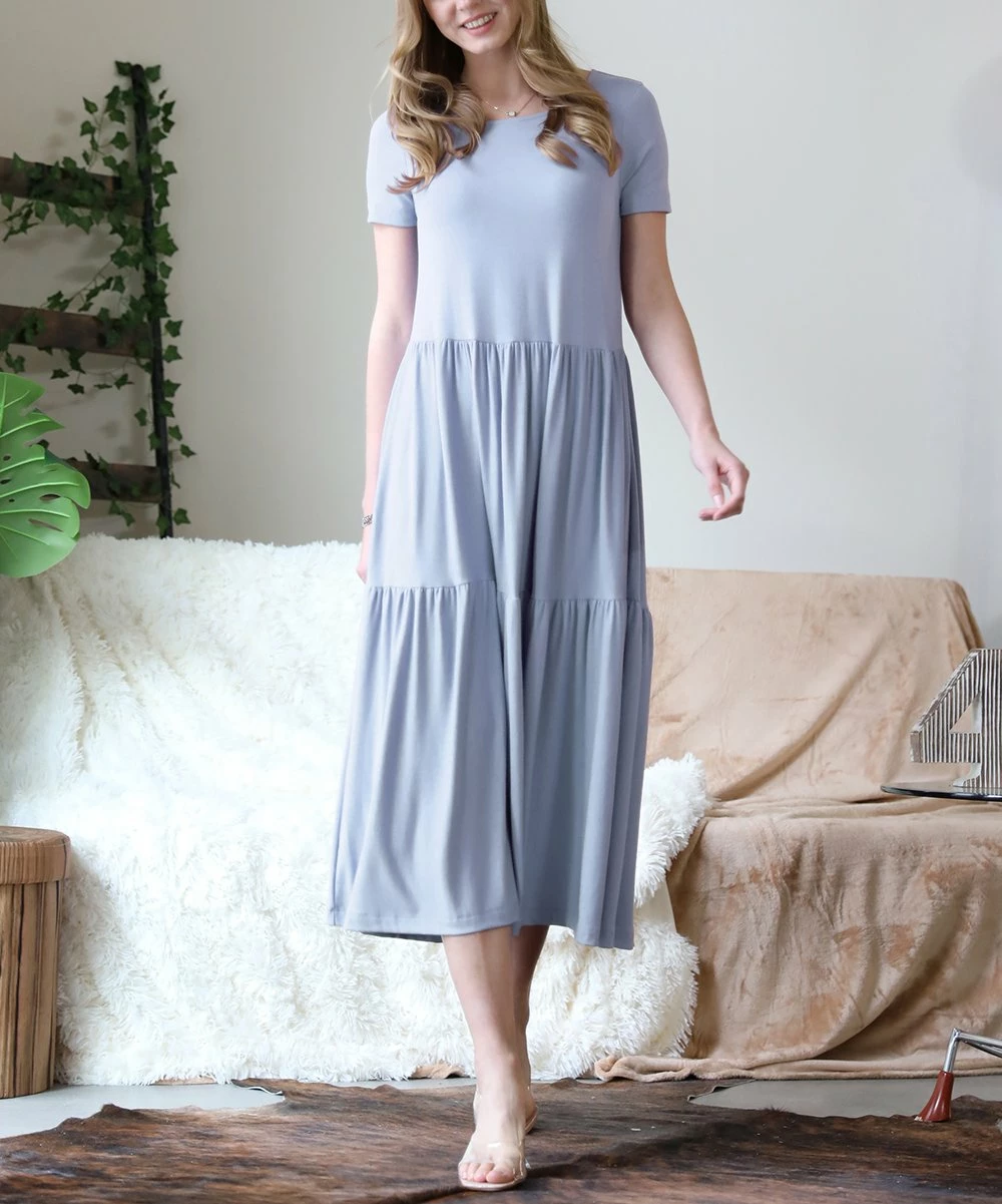 42POPS | Ash Blue Tiered Short-Sleeve Midi Dress – Women