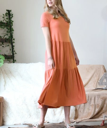 Drift through the day in this midi dress featuring a tiered design for a flowy feel. The soft material is stretch-enhanced and delivers all-day comfort.