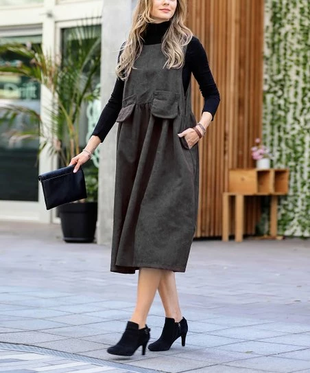Wear this corduroy pick as a sleeveless dress or as a jumper worn over a top. Front pockets.