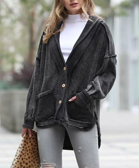 Button up this softly distressed French terry jacket when you’re craving a hint of extra coziness. Front pockets make it simple to carry small essentials.