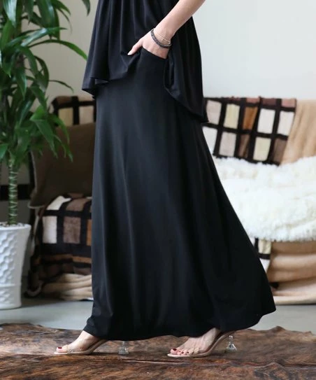 Go with the flow in this maxi skirt featuring a relaxed straight cut, side pockets and a drawstring waist for adjustable comfort.