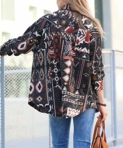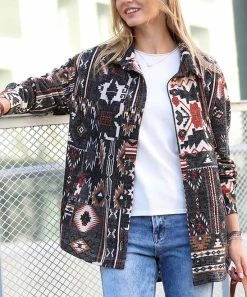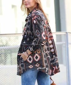 Opt for cozy style in this shacket featuring Southwestern-inspired geometric patterning and handy side pockets.