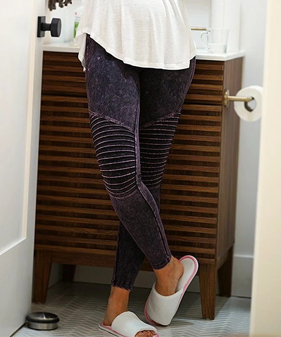 Modernize your layered looks with these cotton-stretch moto leggings flaunting an allover mineral-wash design.