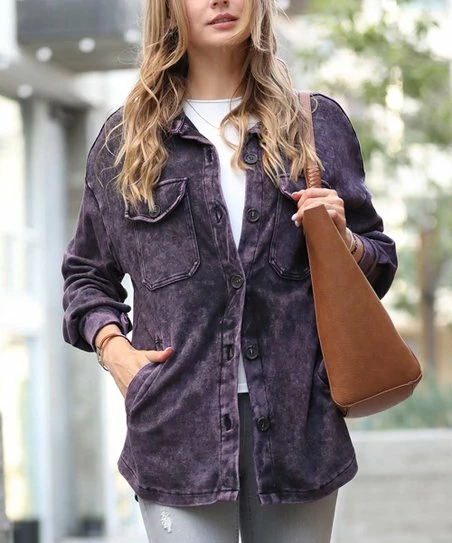 Opt for a layered look with this relaxed cotton shacket featuring side pockets and a vintage-inspired mineral wash.