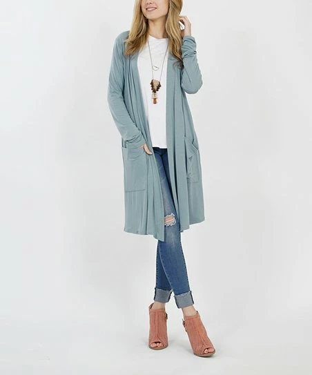 42POPS | Blue-Gray Pocket Open Cardigan – Women