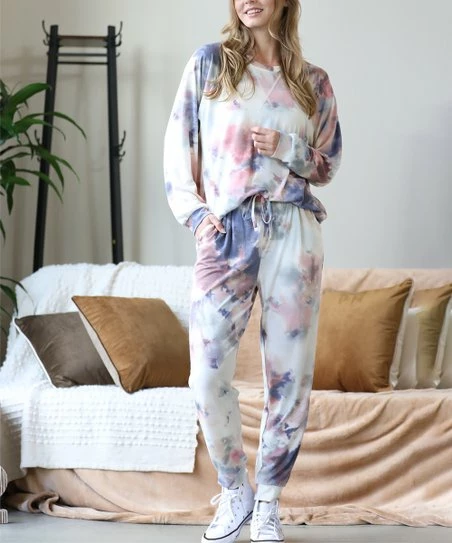 - Includes: blue and white tie-dye pullover and blue and white tie-dye joggers (two pieces total)