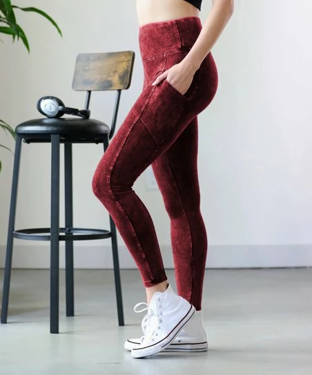 A mineral wash is featured on these leggings made with a wide waistband and full-length legs.