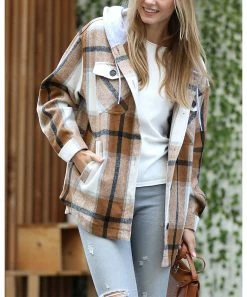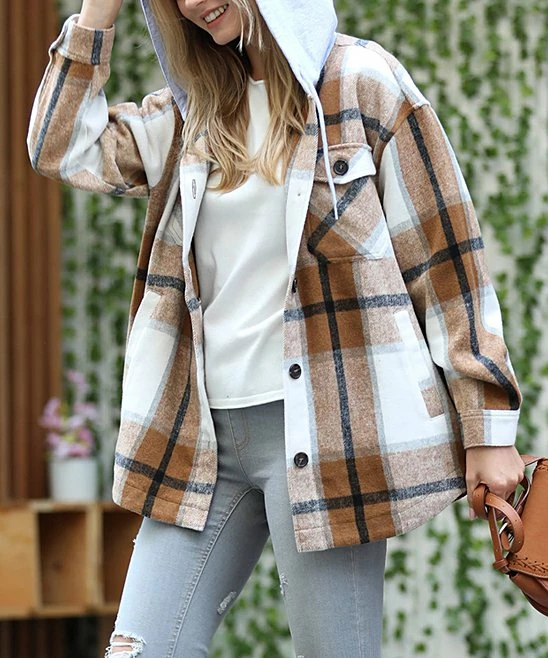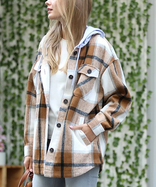 A large hood adds extra coziness to this oversize shacket with side and chest pockets.