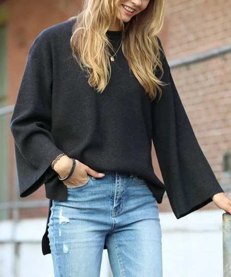 Infuse cozy elegance into your wardrobe with this hi-low hem sweater starring airy bell sleeves.