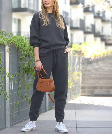 - Includes charcoal crewneck sweatshirt and joggers (two pieces total)
