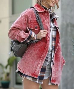 This shacket features a relaxed oversized design, side pockets and a laid-back vintage wash.