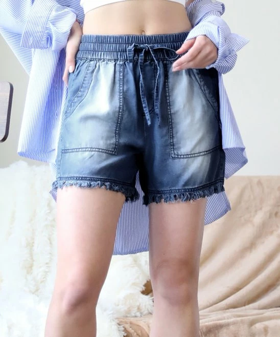 A faded wash and raw cuffs give these relaxed shorts a vintage vibe and the drawstring lets you tighten and loosen the waist for your preferred fit.