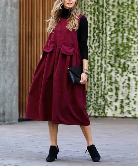 Elevate your wardrobe with this sleeveless midi dress crafted with corduroy for added visual appeal.