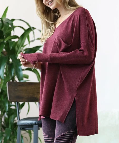 This laid-back top combines an oversize fit with a side-slit asymmetrical hem and classic v-neckline.