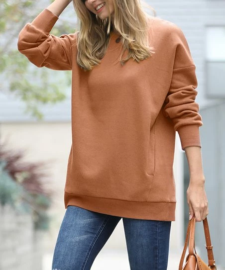 42POPS | Dark Camel Crewneck Long-Sleeve Pocket Sweatshirt – Women