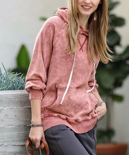 Raglan-sleeve hoodie with a drawstring neckline and an edgy acid wash finish.