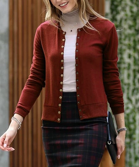 Finish your look with this cozy long-sleeve cardigan featuring snap buttons for simple fitting.