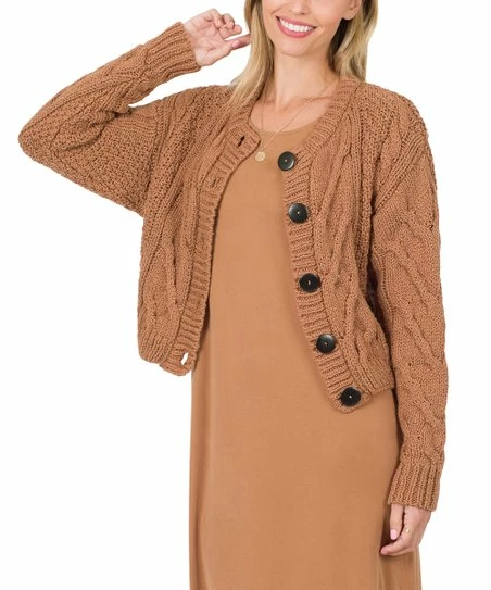 Layer up in a soft knit with this button-front cardigan made from a cotton blend.
