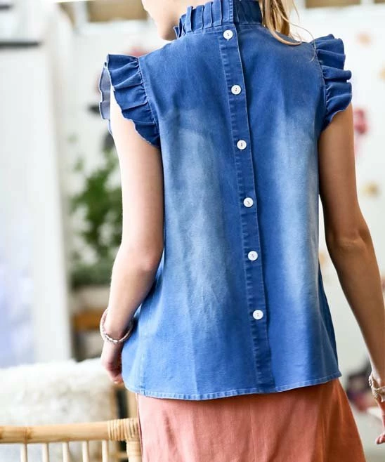 Sunshine-ready sleeveless top featuring ruffle accents and a shirred design. Comfy cotton fabric.
