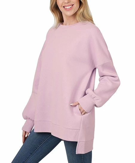 Relaxed hi-low sweatshirt crafted from cotton-blend material with a dose of stretch.