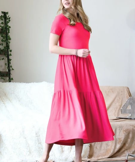 Add to your wardrobe with a versatile midi dress that features classic lines and a convenient length.