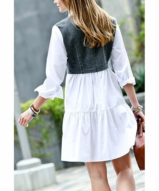 Bring a touch of timeless charm to your wardrobe with this dress that features a chic contrast style.