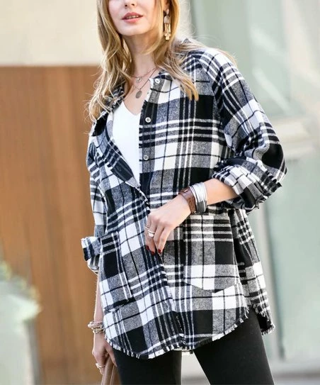 Greet cool days in this shacket featuring handy pockets and a rugged distressed hem.