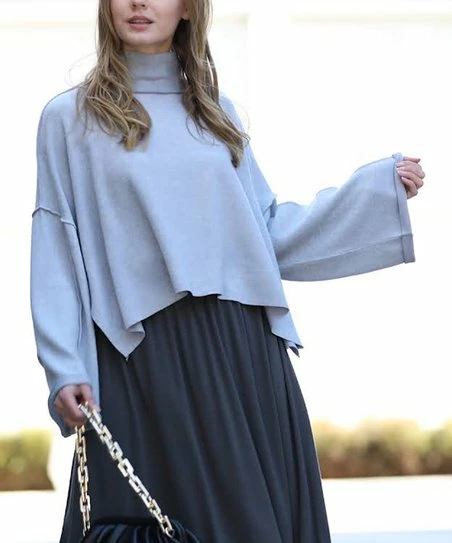 This mock neck sweater features an oversize fit and a lightweight hacci knit made of tri-blend fabric.