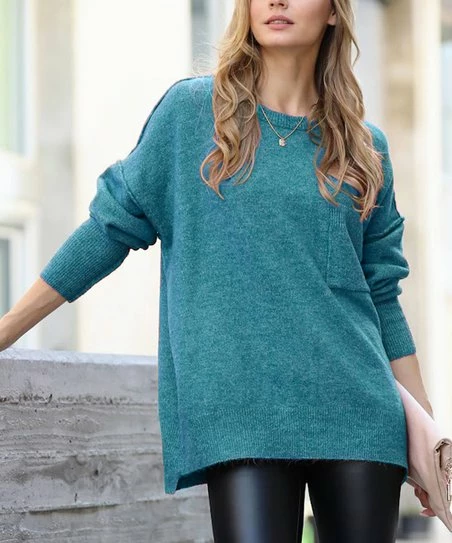 This oversize sweater is defined be a casual fit. Single chest pocket.
