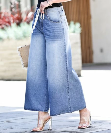 Featuring a waist tie and extra-wide legs, these ombré denim jeans will go with any of your favorite tops.