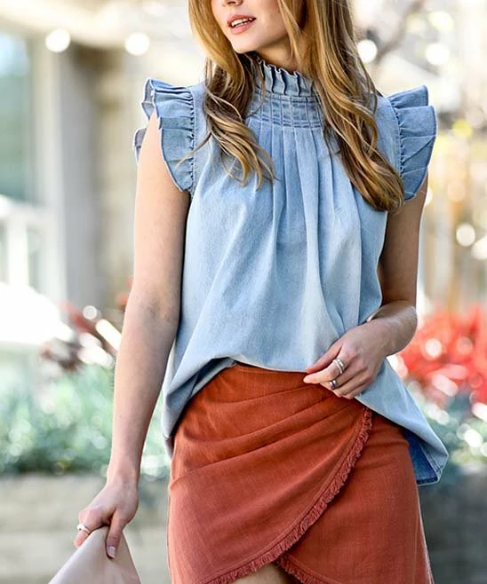 Sunshine-ready sleeveless top featuring shirred detailing and ruffles. Breathable cotton.