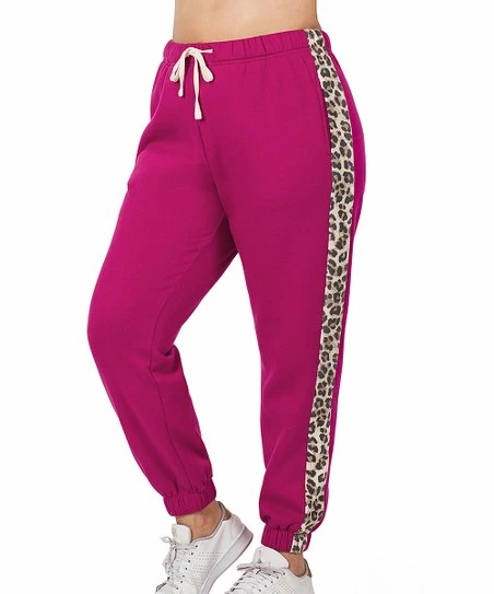 Sweatpants featuring a standout leopard panel down the leg and drawstring closure. Side pockets.