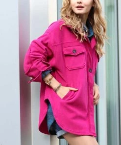 Fend off chilly weather in this warm fleece shacket featuring rugged elbow patches and handy side pockets.