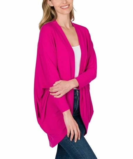 A supremely soft tri-blend makes this wrapping cocoon cardigan extra cozy.