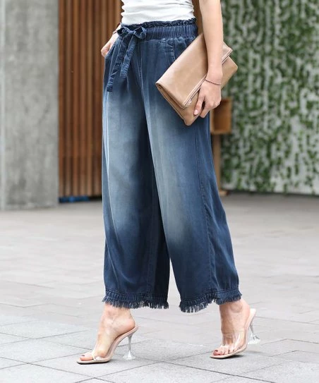 Enjoy the relaxed feel of these wide-leg chambray pants featuring an adjustable sash at the waist and a cool cropped length.