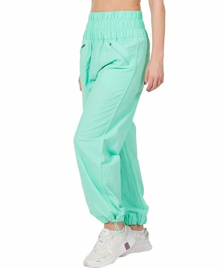 Keep cozy on windy days with these joggers featuring windbreaker material to seal out breezes. The smocked waistband offers a comfy fit and side pockets answer your need for on-the-go storage space.