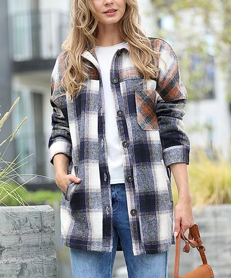 42POPS | Navy & Rust Plaid Oversize Pocket Shacket – Women
