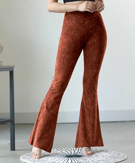 42POPS | Neon Brick Mineral Wash Raw-Edge High-Waist Yoga Pants – Women