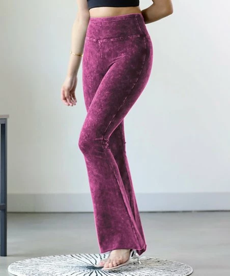 These flared high-rise yoga pants featuring a mineral-wash finish and a raw-edge hem bring versatile trendiness to your closet.