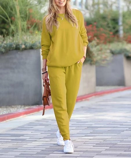 Stay comfy throughout the day in a stretch-infused sweatshirt with matching joggers.