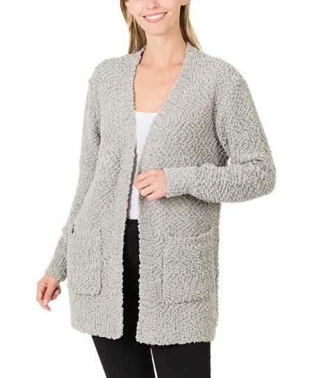 A cozy popcorn texture adds warmth to this open cardigan with pockets.